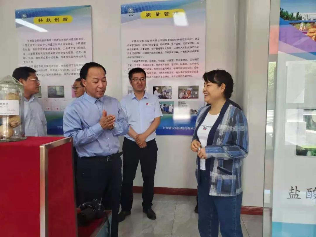 6月8日,甘肅省政協副秘書長、農工黨甘肅委員會專職副主委張彥凌一行十一人到普安公司調研。張彥凌一行察看了公司文化展廳、制劑外包車間、提取車間等。隨后,雙方召開座談會。