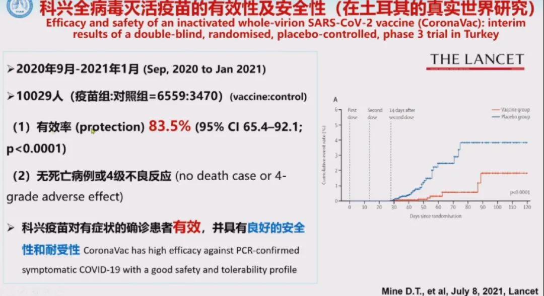另一項研究發表在《柳葉刀》上,研究顯示,科興疫苗在土耳其的有效率達83.5%,同時沒有出現因為接種疫苗而產生嚴重不良反應和死亡的報告。鐘南山介紹,這項研究同樣表明科興疫苗對接種者有很好的保護效果,并且安全而具有耐受性。