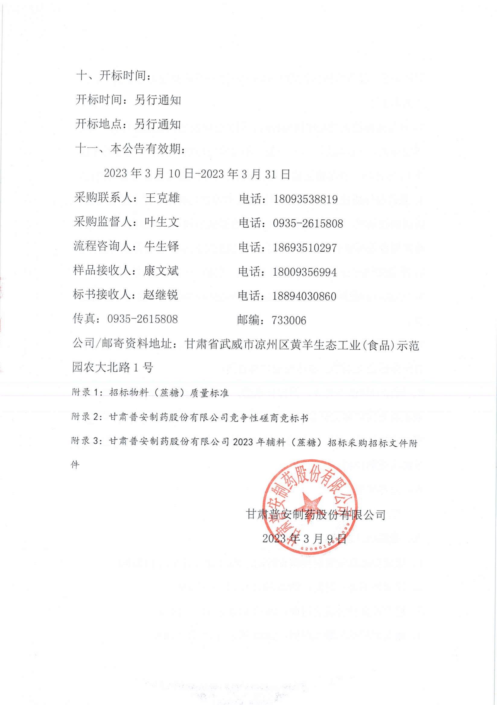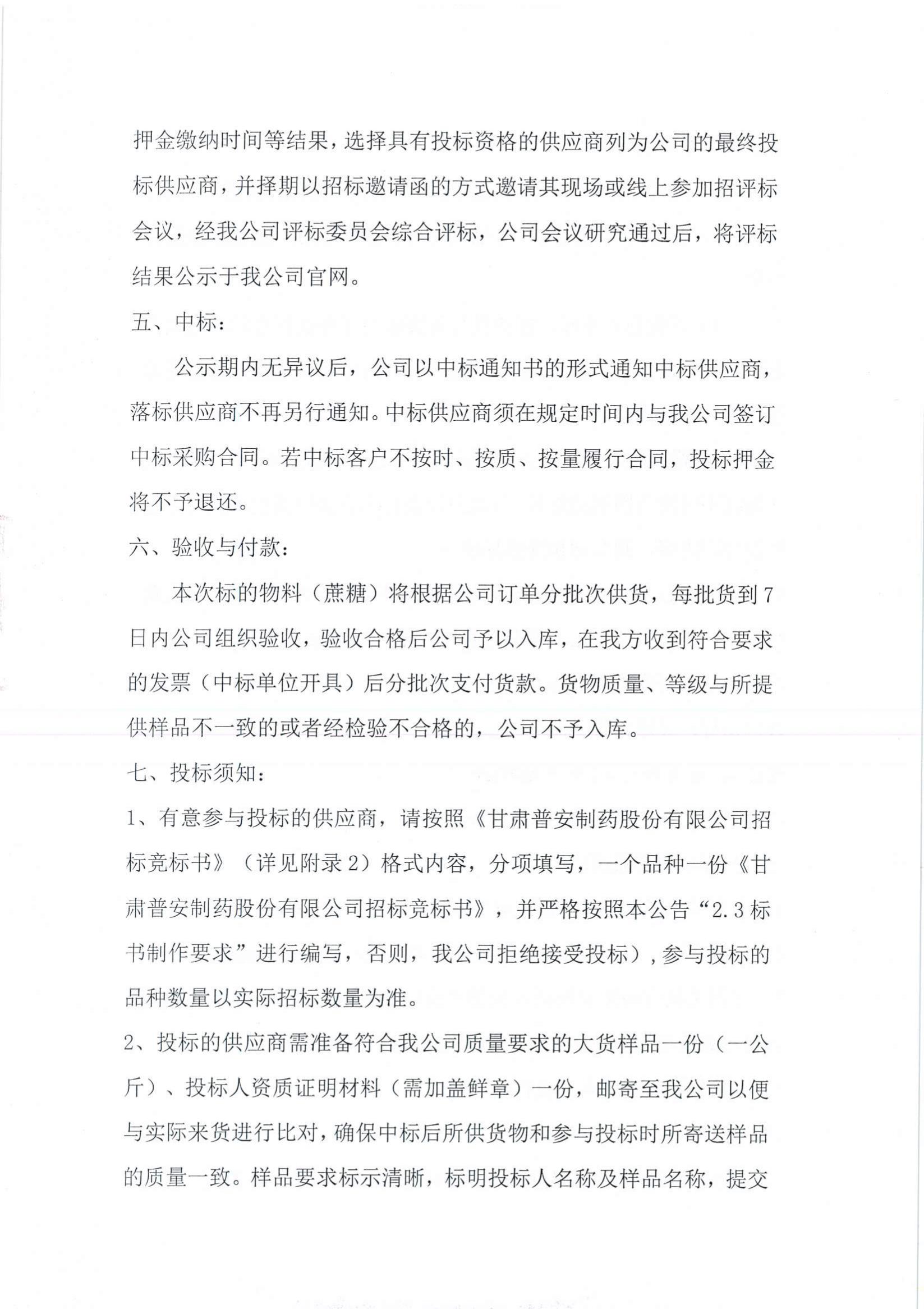具體內(nèi)容詳見附件:甘肅普安制藥股份有限公司2023年宣肺止嗽合劑物料(蔗糖)采購競(jìng)爭(zhēng)性磋商公告