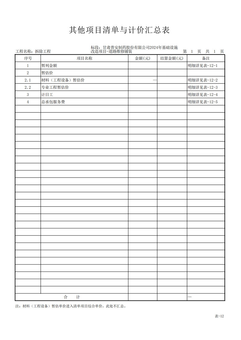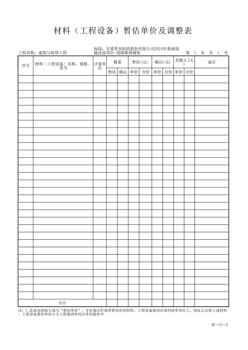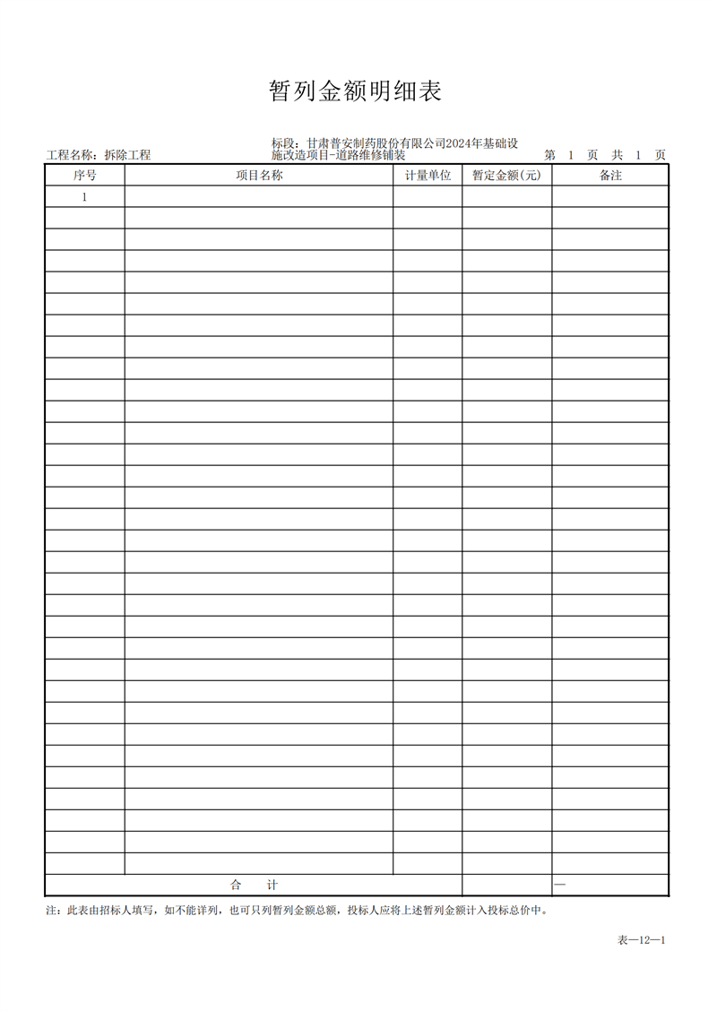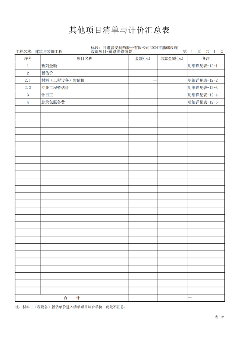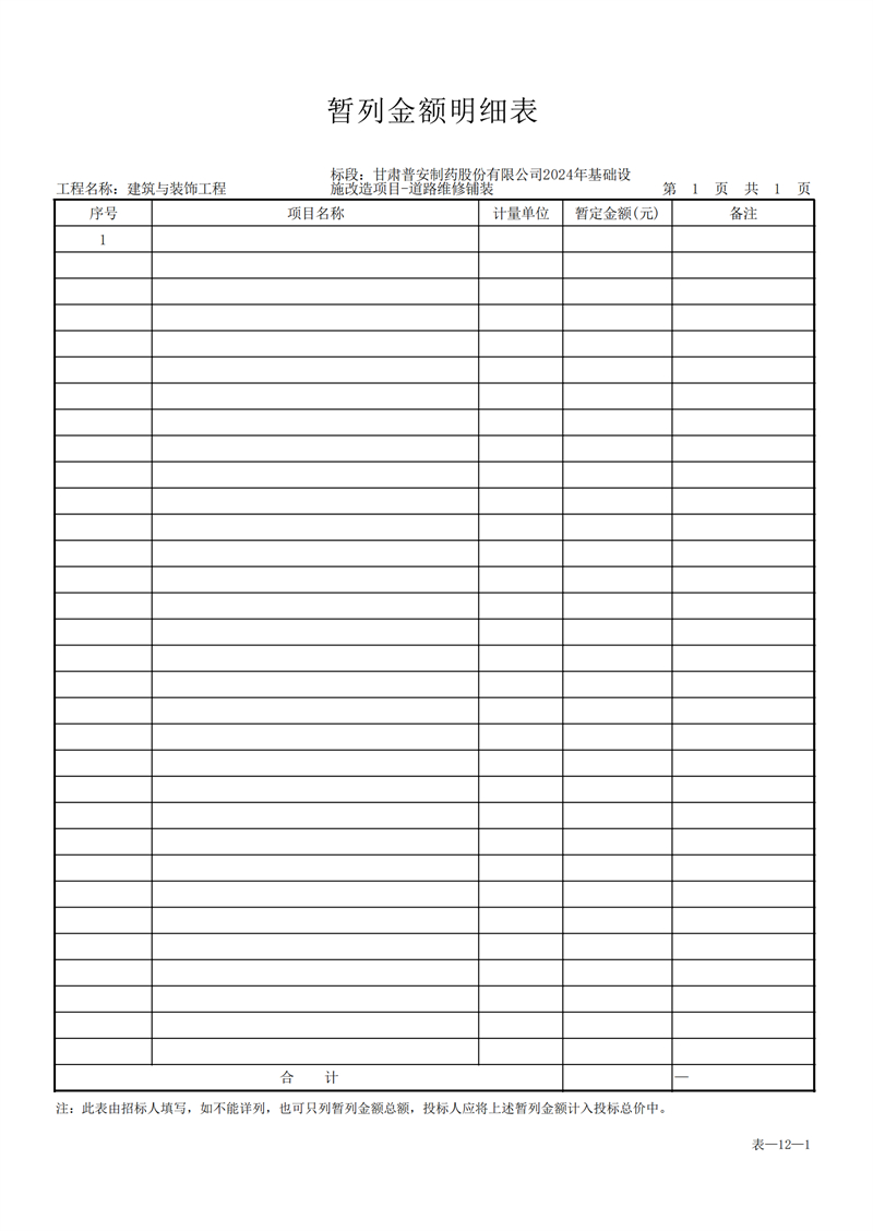 甘肅普安制藥股份有限公司2024年基礎設施改造項目-道路維修鋪裝工程招標公告