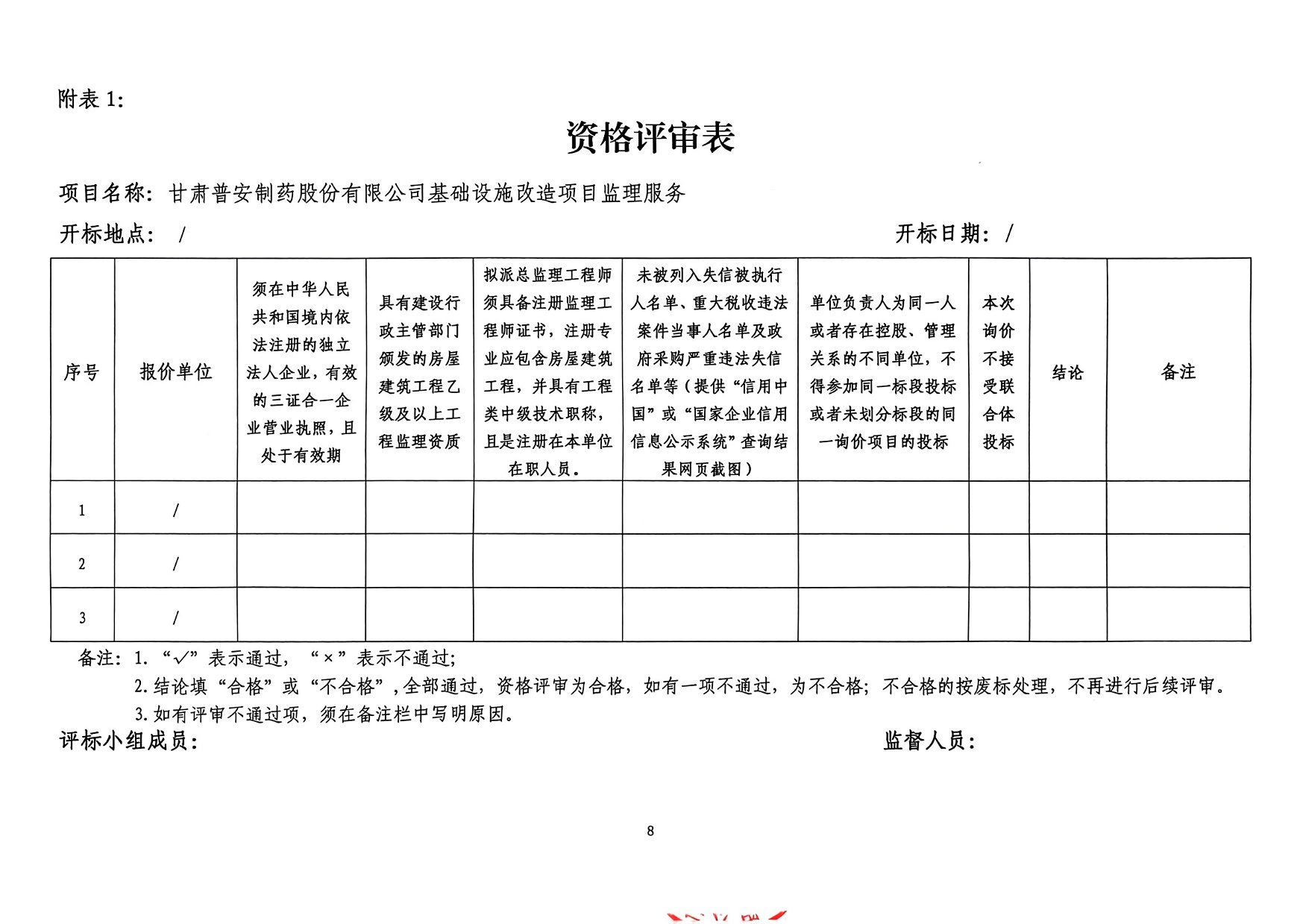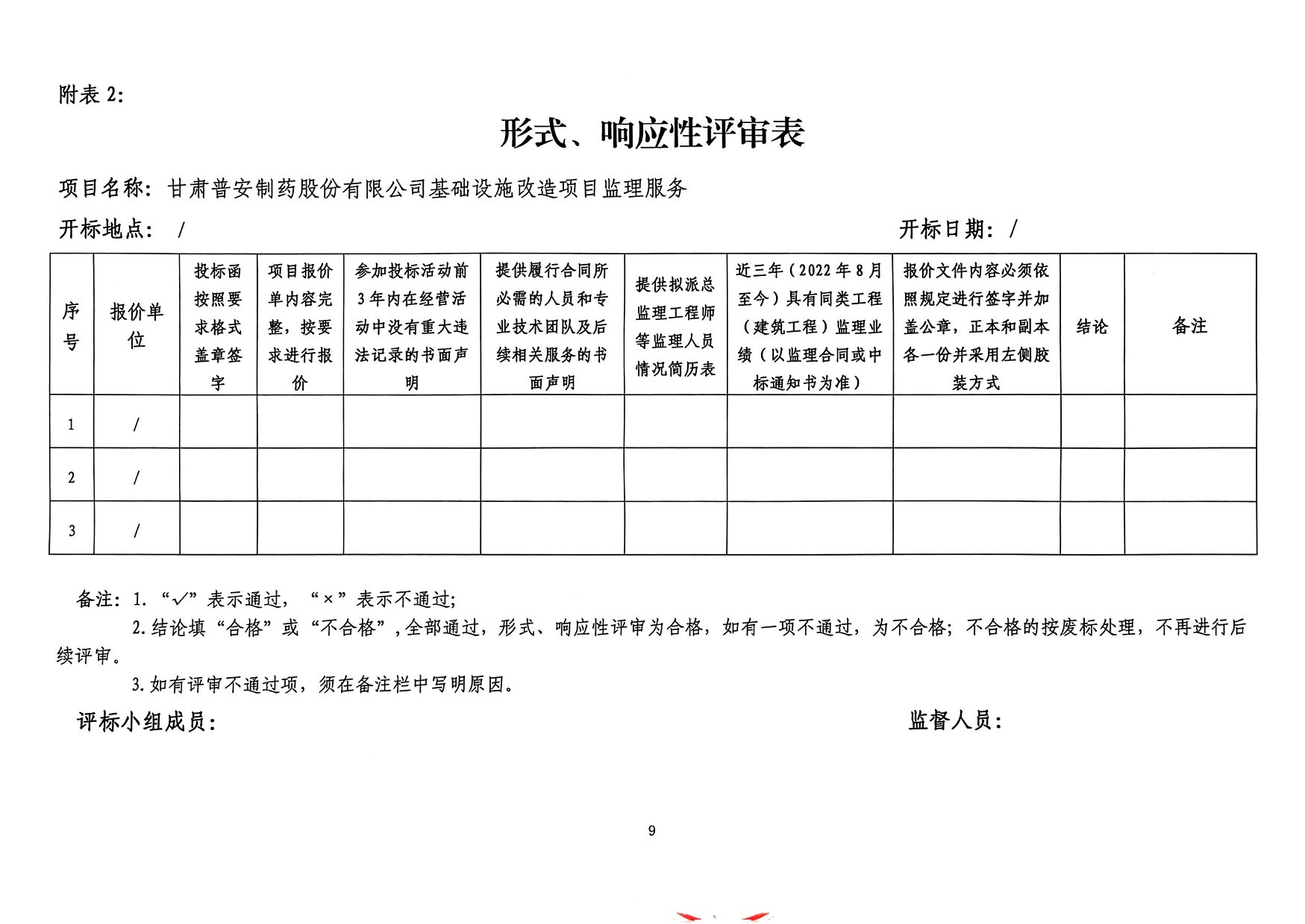 甘肅普安制藥股份有限公司 基礎(chǔ)設(shè)施改造項目監(jiān)理服務(wù)詢價公告